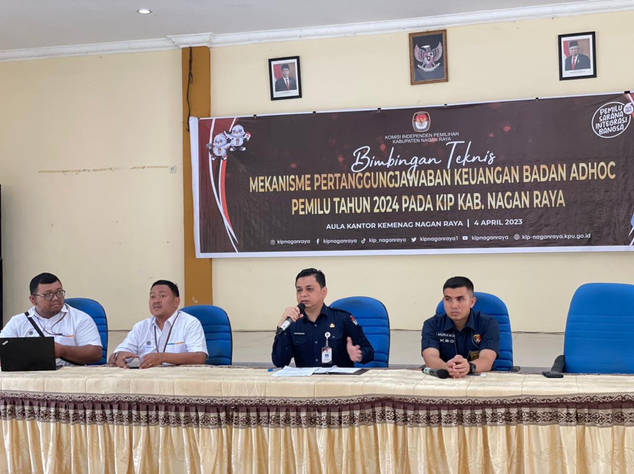 Suka Makmue, kip-naganraya.kpu.go.id - Komisi Independen Pemilihan Kabupaten Nagan Raya laksanakan Bimbingan Teknis Mekanisme Pertanggungjawaban Keuangan Badan Adhoc Pemilu Tahun 2024, Selasa (04/04/2023). Kegiatan Bimtek berlangsung di Aula Kantor Kemenag Kabupaten Nagan Raya, Acara Bimtek ini dibuka oleh Plh. Ketua KIP Kabupaten Nagan Raya Nazaruddin, SE didampingi oleh Sekretaris dan jajaran sekretariat KIP Nagan Raya. Peserta Bimtek terdiri dari Ketua dan Anggota PPK Se-Kabupaten Nagan Raya, Sekretaris dan Staf Sekretariat serta Tenaga Pendukung Sekretariat PPK Se-Kabupaten Nagan Raya. Dalam Sambutannya Plh Ketua KIP Kab. Nagan Raya menyampaikan Anggaran Badan Adhoc PPK dan PPS dikelola secara tepat jumlah, tepat penerima dan tepat waktu, Anggaran badan adhoc dikelola secara baik sesuai dengan aturan dan perundang-undangan yang berlaku. Acara Bimtek ini mengadirkan 3 Narasumber yaitu KBO Reskrim Polres Nagan Raya Ipda Munawir Razali dengan Materi Peranan Kepolisian dalam Penanganan Tindak Pidana Pemilu Pada Sentra Gakkumdu, Kepala Seksi Manajemen Satker dan Kepatuhan Internal KPPN Meulaboh Fitri Arif Yulianto dan Pembina Teknis Perbendaharaan Negara (PTPN) KPPN Meulaboh Jhonstemos Kafaso Perangin Angin. Pembina Teknis Perbendaharaan Negara (PTPN) KPPN Meulaboh Jhonstemos Kafaso Perangin Angin menyampaikan Materi Implementasi Peraturan Menteri Keuangan Nomor 181/PMK.05/2022 Tentang Tata Cara Pelaksanaan Anggaran dalam rangka Tahapan Pemilihan Umum dan Kepala Kejaksaan Negeri Nagan Raya Muib, SH, MH.Li dengan Materi Mekanisme Penyaluran dan Pertanggungjawaban Penggunaan Dana Tahapan Pemilihan Umum yang Moderatori oleh Sekretaris KIP Kabupaten Nagan Raya Agus Mudaksir, SH. adapaun materi terakhir disampaikan oleh Bendahara Pengeluaran dan jajaran Tim Keuangan KIP Kabupaten Nagan Raya terkait dengan Tata Cara Pembuatan Laporan Pertanggungjawaban (LPJ) Badan Adhoc dan Format LPJ yang harus disiapkan oleh PPK dan PPS setiap bulannya. Kegiatan ditutup dengan Foto bersama. (Tekparhupmas)